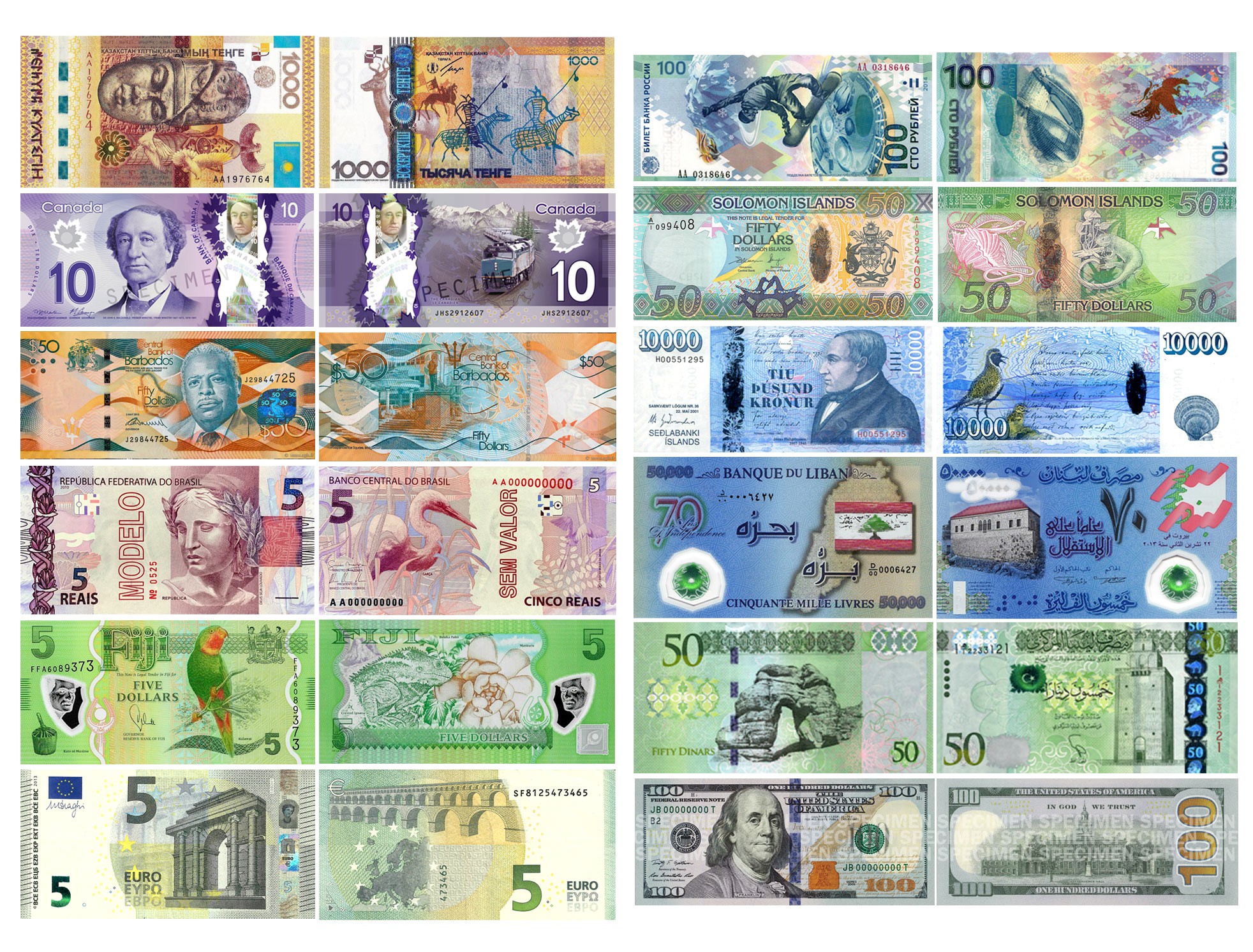 Kit com 12 cédulas (réplicas) das notas mais bonitas do mundo, segundo "Bank Note of the Year Award" de 2013.
