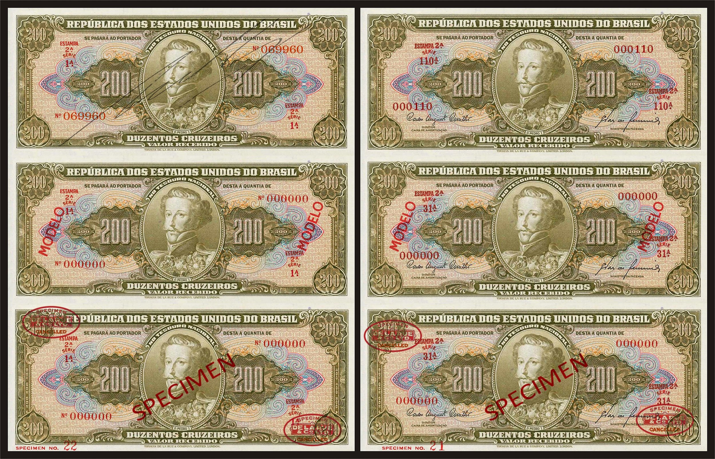 Lindas reproduções das cédulas de 200 cruzeiros.