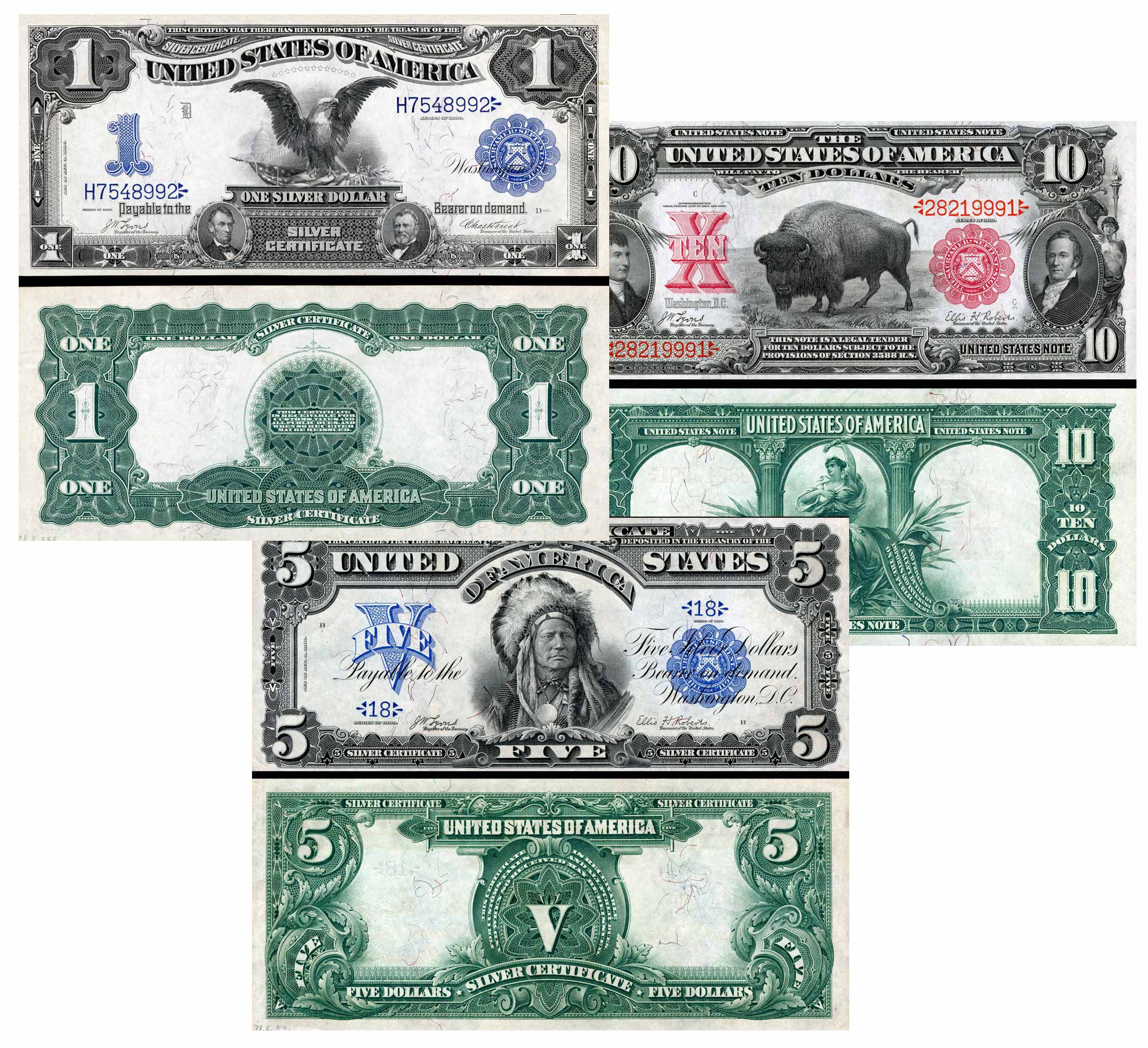 Réplica da cédula Black Eagle dos Estados Unidos de US$ 1. Certificado de Prata de 1899 com retrato de
