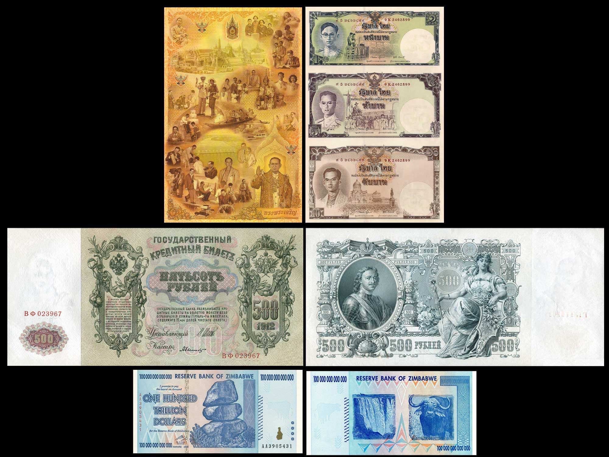 Rússia de 500 Rublos de 1912, sendo a maior em tamanho.